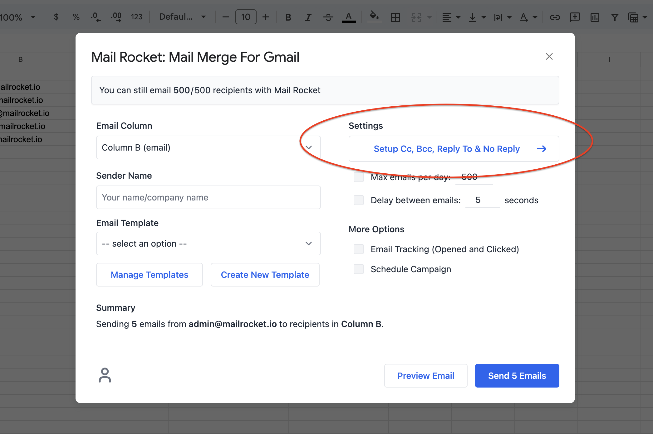 * Open Mail Rocket: Mail Merge For Gmail > Create Mail Merge
